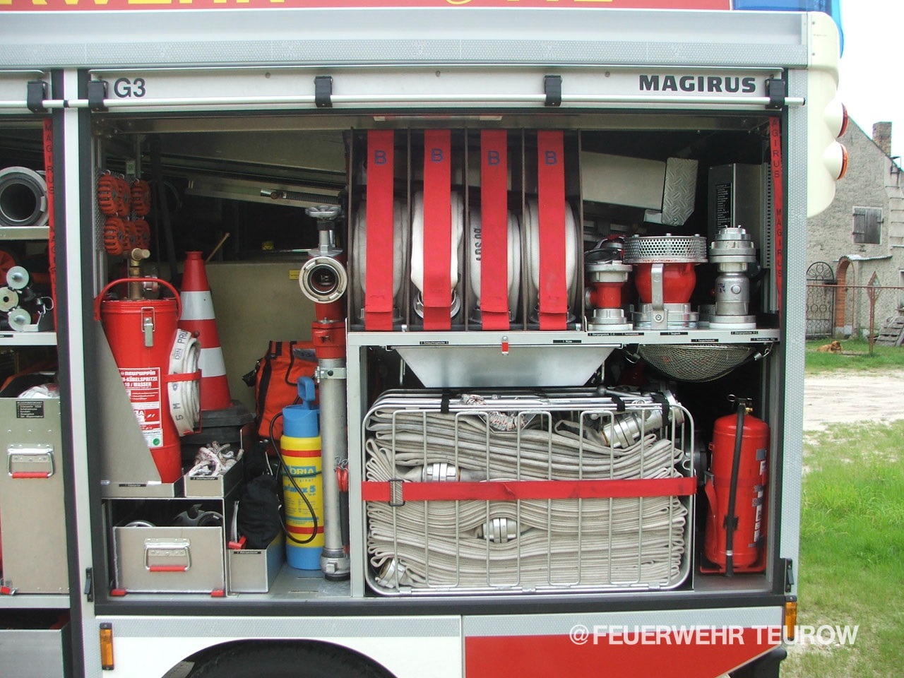 Als das neue TSF-W unser stolze 36 Jahre altes LF8 ablöste, war noch kaum abzusehen, wie umfangreich die Beladung im Laufe der Zeit werden würde. Ausgeliefert mit einer Magirus Fire 1000, übernahm das Fahrzeug zunächst die restliche Ausrüstung fast komplett vom Vorgänger. Seither haben wir die Ausstattung kontinuierlich ergänzt und modernisiert, sodass wir unseren Einsatzwert stetig steigern konnten.